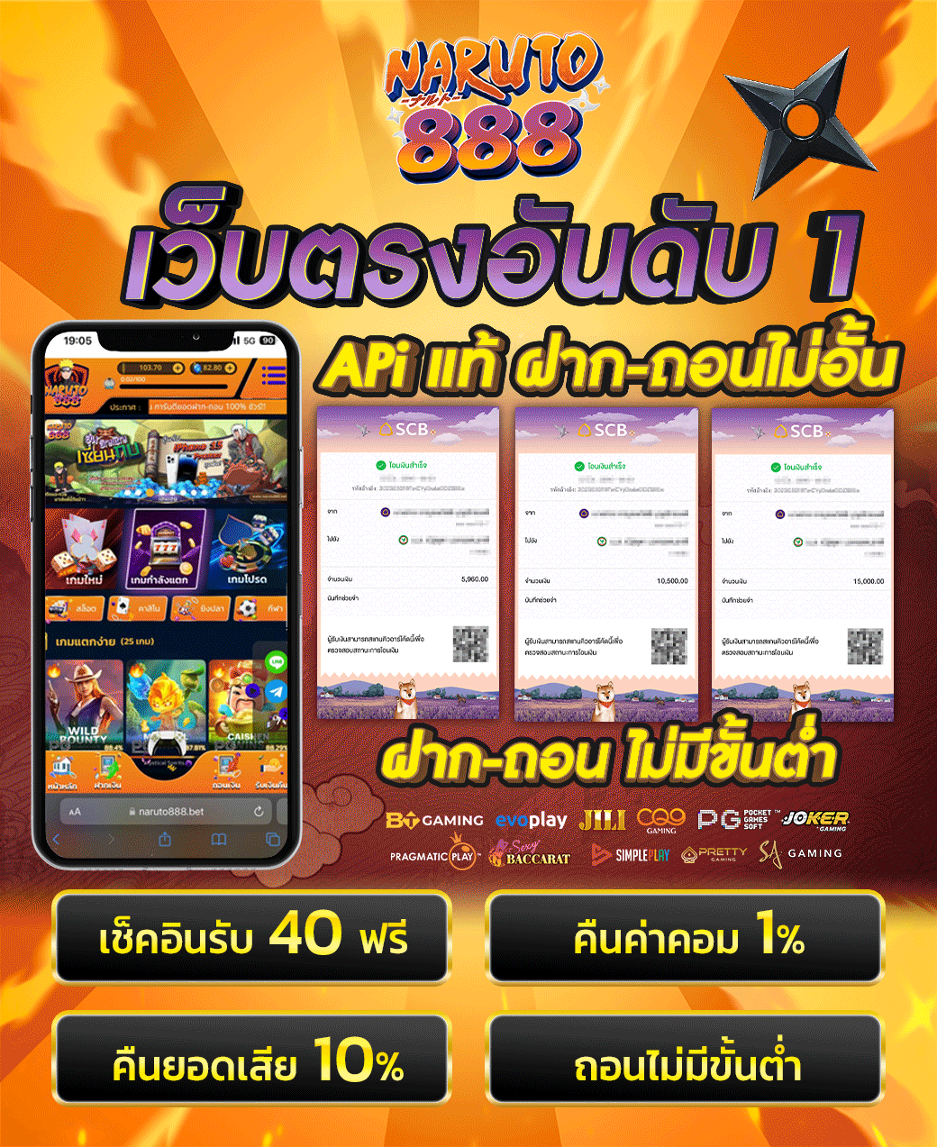 สัมผัสประสบการณ์เกมพนันออนไลน์ที่หลากหลายกับ NARUTO888 เว็บพนันที่รวบรวมเกมเดิมพันยอดนิยมไว้มากมาย ไม่ว่าจะเป็นสล็อต บาคาร่า กีฬา คาสิโนสด และหวย พร้อมระบบฝาก-ถอนอัตโนมัติที่รวดเร็วทันใจ รองรับทุกธนาคารและวอลเล็ทชั้นนำ มาพร้อมโปรโมชั่นสุดคุ้มสำหรับทั้งสมาชิกใหม่และสมาชิกเก่า